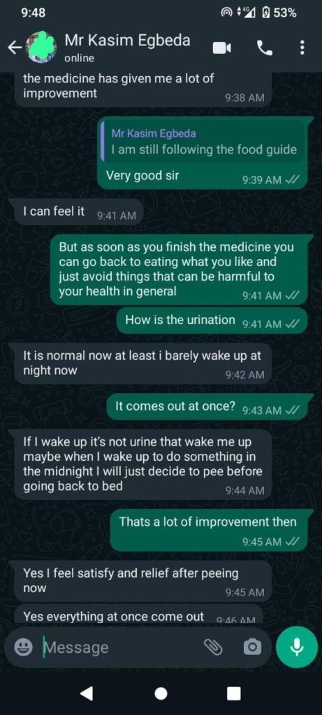 He took my sample and i was asked to come back for my result after some days i got my result and my PSA was around 15 as against the normal… i became so worried and i explained this to my wife and my mom, in the process of talking, my mom interrupted me and told me how surgery was done on my dad and he has to live on diapers before passing on and then she narrated how my uncle also passed on after battling with prostate enlargement which lead to blockage and other complications…. he was placed on catether but couldnt live on it for long